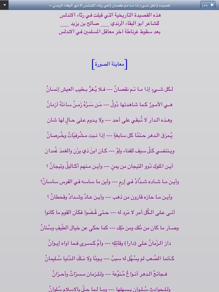 قصيدة رثاء الأندلس مع الشرح من منتدى التاريخ الشعر الجاهلي Facebook