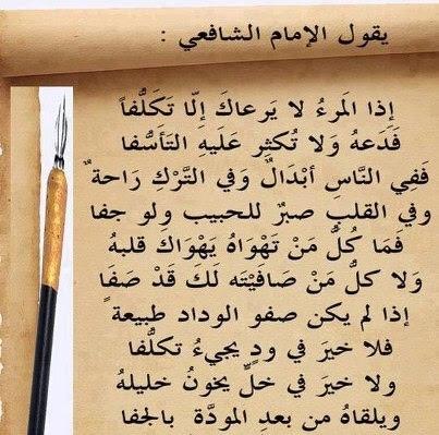 فهد راشد On Twitter هذا الابيات للامام الشافعي رحمه الله لي سنوات وانا احفظها وأرددها دائما من اجمل ما قرأت له إذا المرء لا يرعاك إلا تكلفا فدعه ولا