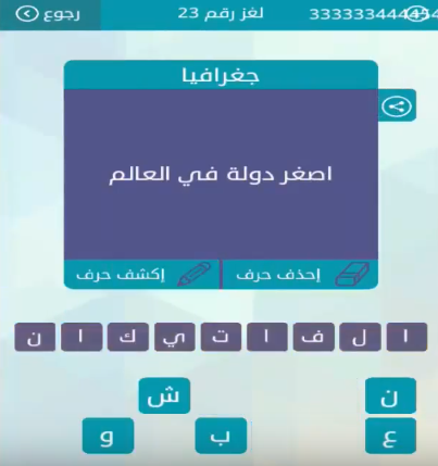 حل سؤال اصغر دولة فى العالم من لعبة وصلة المجموعة الثالثة لغز رقم 23 صقور الإبدآع