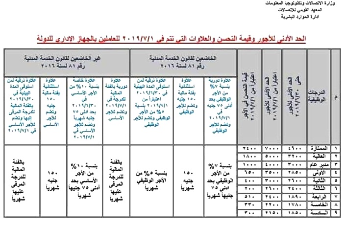 السبورة عاجل جدول الحد الادنى للأجور وقيمة التحسن والعلاوات في 1 7 2019 مستند