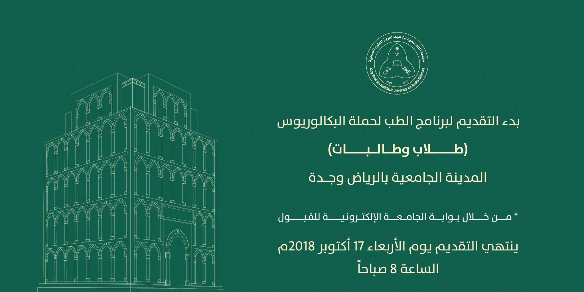 Uzivatel جامعة الملك سعود بن عبدالعزيز للعلوم الصحية Na Twitteru بدء التقديم لبرنامج الطب لحملة البكالوريوس للطلاب والطالبات في الرياض و جدة للاطلاع على الشروط والتقديم Https T Co G8fkhydfcg جامعة لصحة وطن Https T Co 93ofcw1tdi