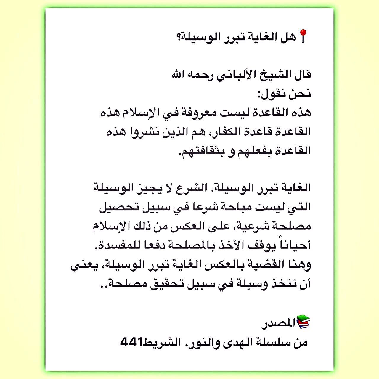 كبار علماء أهل السنة On Twitter هل الغاية تبرر الوسيلة قال الشيخ الألباني نحن نقول هذه القاعدة ليست معروفة في الإسلام هذه القاعدة قاعدة الكفار