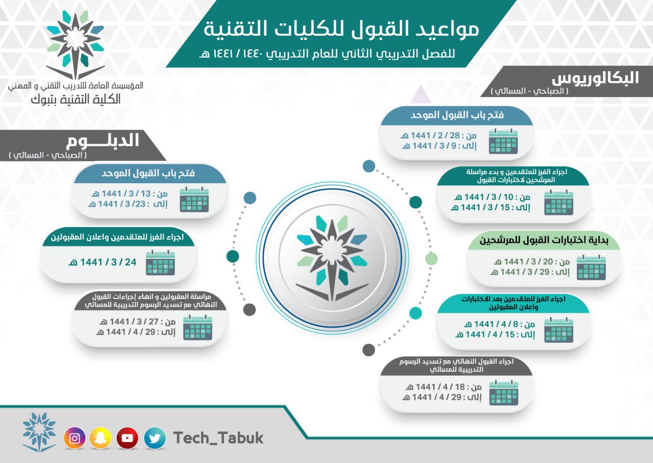 الكلية التقنية للبنين بتبوك On Twitter مواعيد القبول والتسجيل للكليات التقنية بكالوريوس دبلوم للفصل الثاني من العام التدريبي 1440 1441 هـ التدريب التقني Https T Co 0px81vflla