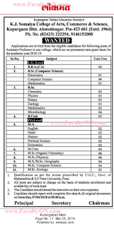 K J Somaiya College Of Arts Commerce Science Kopargaon Dt Ahmednagar Wanted Assistant Professor Faculty Teachers